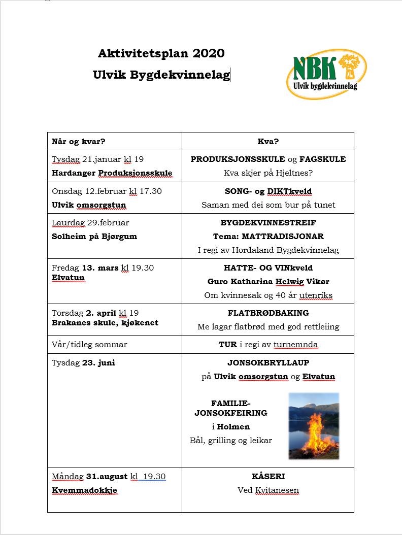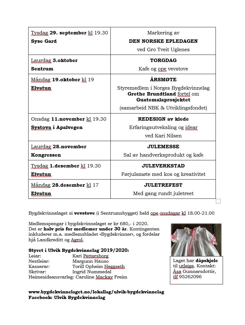 Nytt Styre i Fitjar Bygdekvinnelag. 2019/ 2020