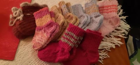 Vi bygdekvinner strikker sokker til nyfødte i Nordre Land!