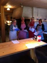 Breim Bygdekvinnelag på pizza- og bollebaking på Fjorddamattunet med Kari Støfringdal.