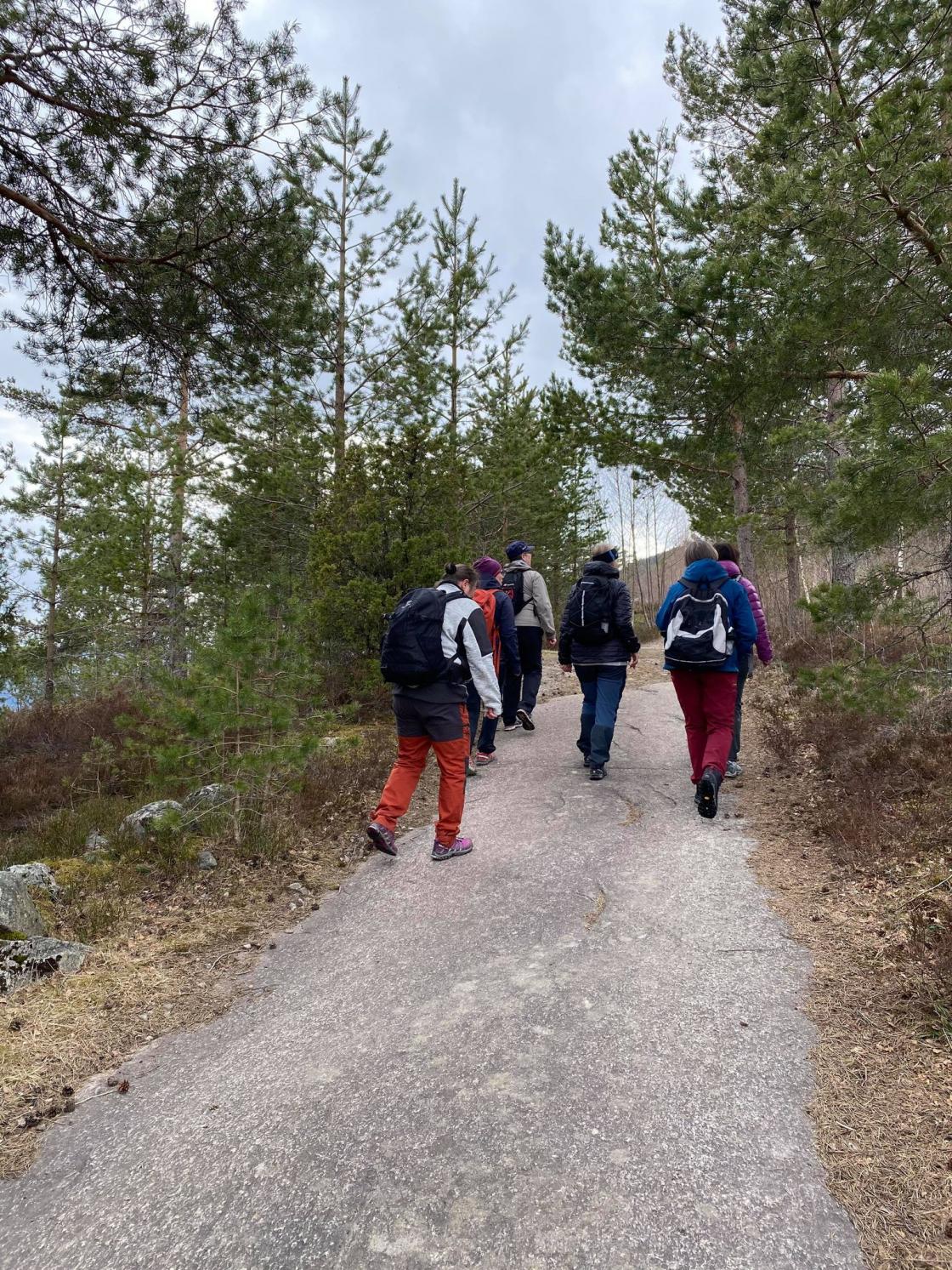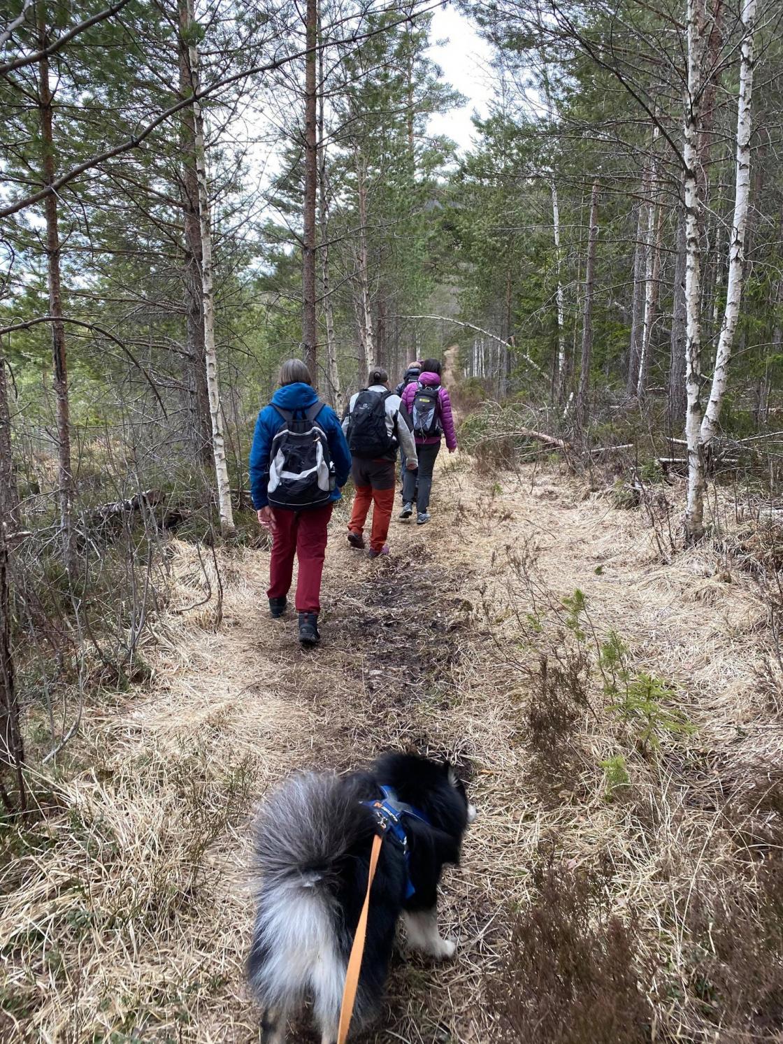 Det møtte opp syv kvinner og hunden Tavi til en flott tur til Ding-Dang Kyrkja. Alle kom med godt humør og ved kyrkja blei det kaffi, kakao og noe godt ved siden av.